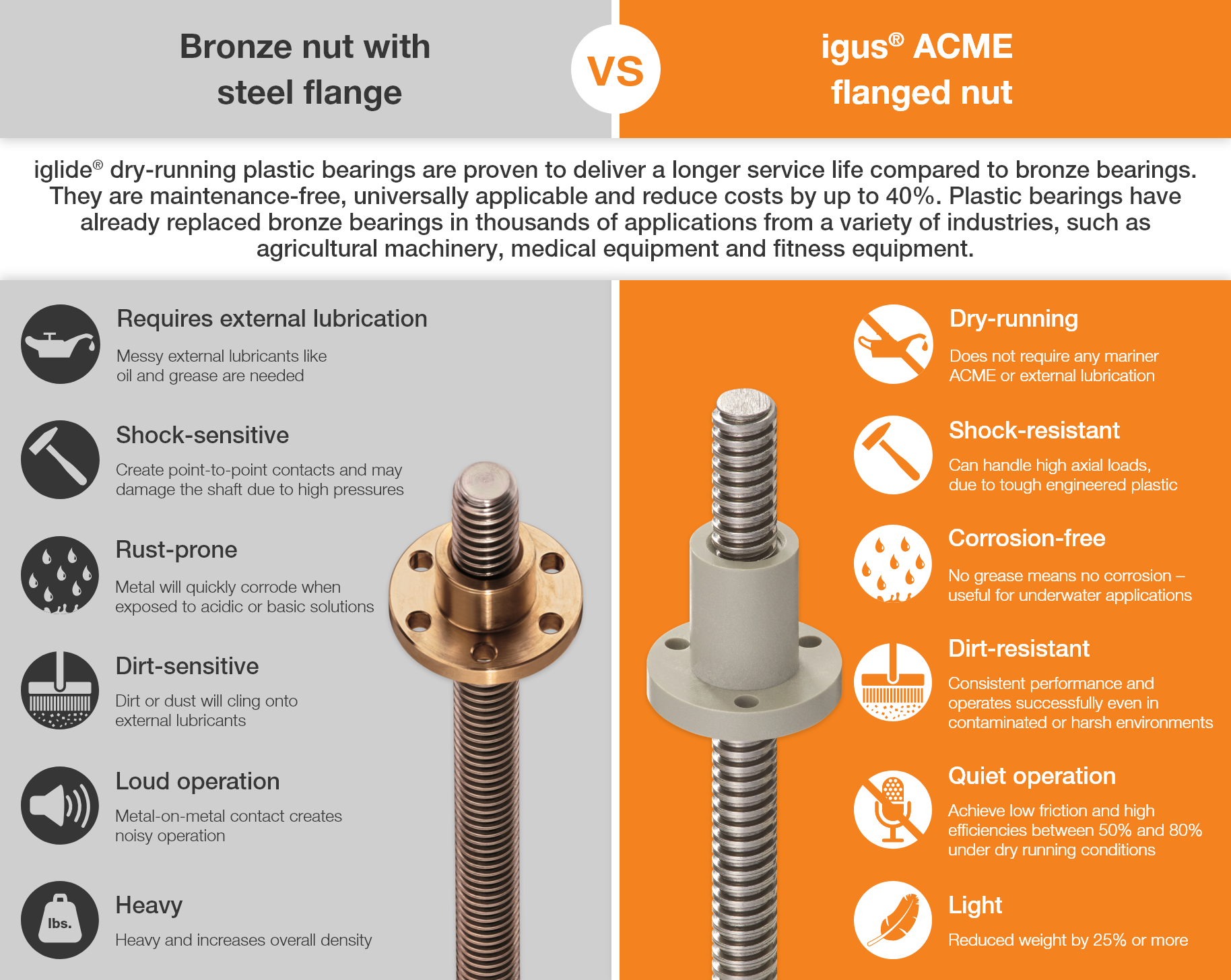 Bronze vs. iglide® flanged nuts