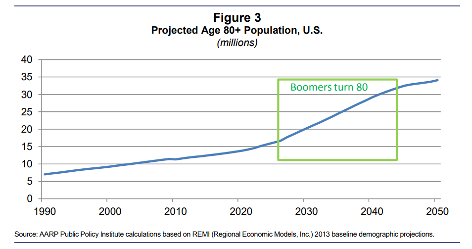 According to a 2013 report by AARP, the majority of long-term care for older adults over the age of 80 in the US is provided by their family members – particularly their middle-aged daughters. However, the report shows that the number of available family caregivers is likely to shrink as the aging baby boomer population grows.