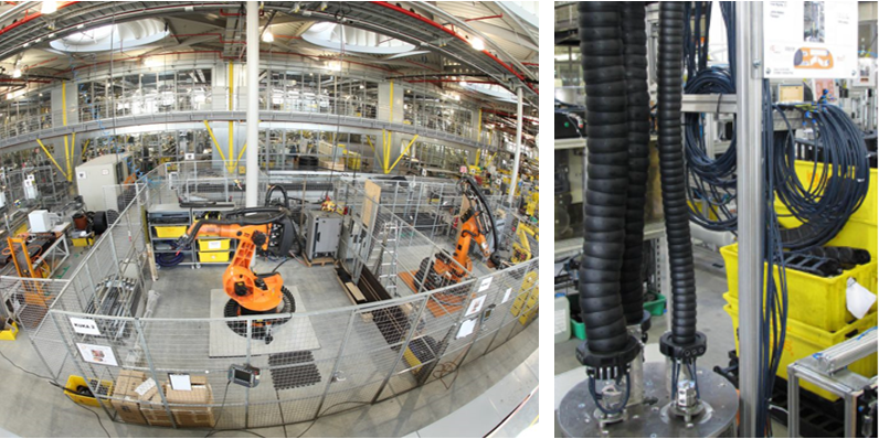 If you think of a typical application within an automotive production line, for example, it quickly becomes clear what kind of movement could be affecting the cables here: torsion.